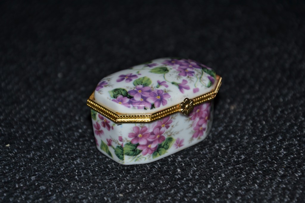Ett pyttelitet skrin. Jag funderar fortfarande på vad man kan ha i den. Små örhängen? Den är 5 centimeter lång liksom. ^^