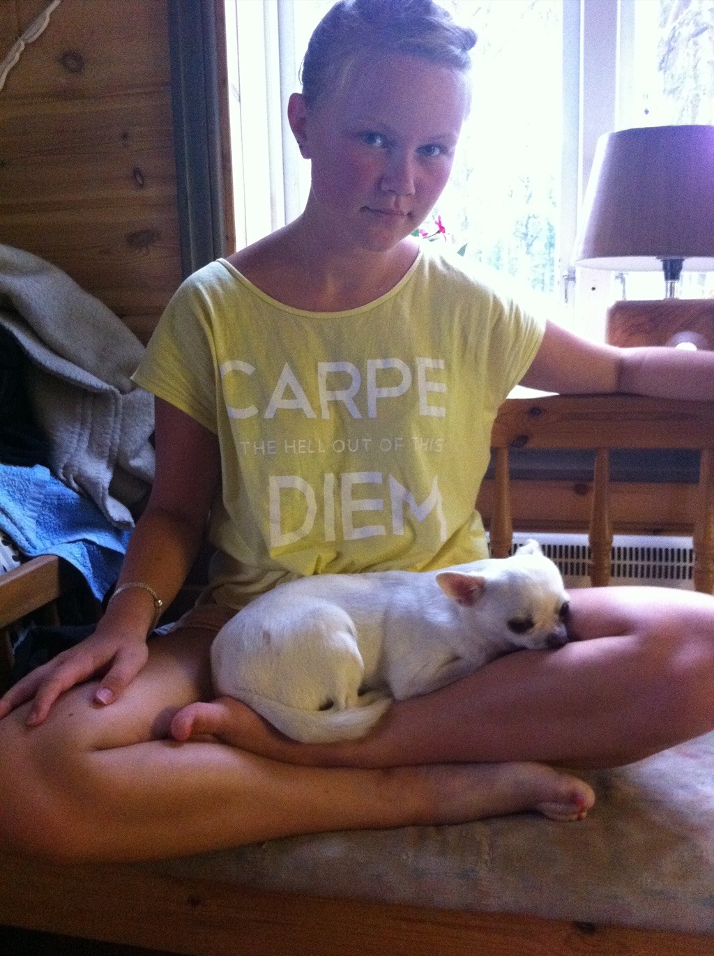 Har för övrigt idag skött och ridit häst, åkt båt, gått skogspromenad, fotat en massa, kört fyrhjuling, bastat och nu sitter jag och kelar med tre hundar. Hur gulliga som helst!