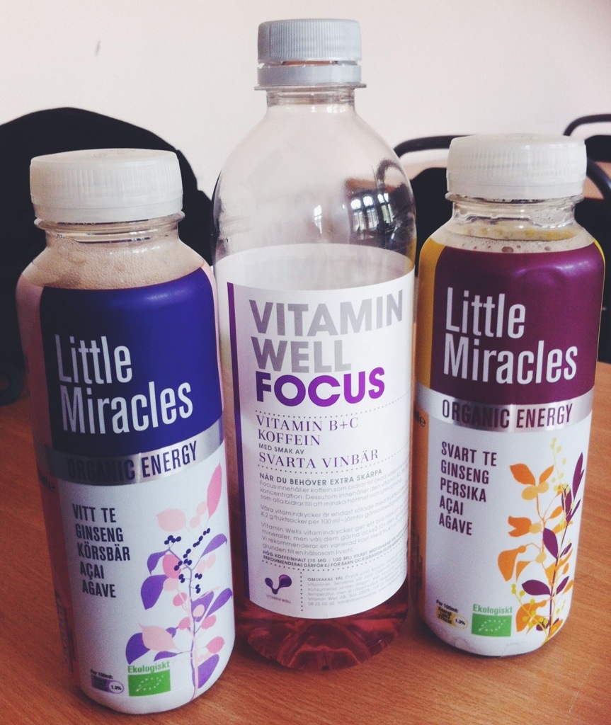 Sen när jag skulle gå och möta Martin så delade de ut ”Little Miracles” – hälsosamma energidrycker typ. Vi prövade en med grönt te och granatäpple (den är inte på bilden) som var helt okej. Smaken var god men den kändes bekant på nåt sätt.