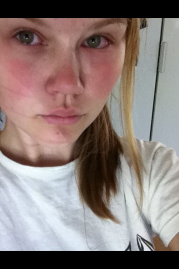 Hmm, det svider. Väldigt mycket. Sen rinner det en massa slem också som stelnar runt ögonen om man inte tar bort det (under natten fastnar det i ögonfransarna så man typ sliter bort halva ögonfransarna när man öppnar ögonen). Igår var det verkligen sjukt hur jag såg ut; Mitt öga var helt knallrött och svullet så jag inte kunde se när jag tittade ner ordentligt. Nu gör det ”bara” ont, svider och rinner lite.